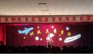 2018年11月12日下午四点半,由学院团委主办、财经信息工程系承办的以“科技点亮生活”为主题的第十届电子信息风采展示大赛在体育馆活动中心盛大召开。出席此次活动的有我系辅导员刘晓彤老师、张子默老师以及各系学生会主席、团总支秘书长和新媒体主任。来自各系的六百余名同学观看了本次比赛。
