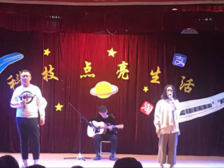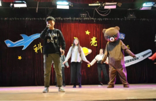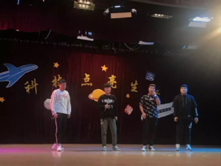 在比赛间隙中,同学们用精彩的节目来缓解紧张的比赛气氛。