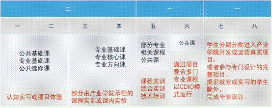 (淡绿色区域为产业学院承担人才培养环节)