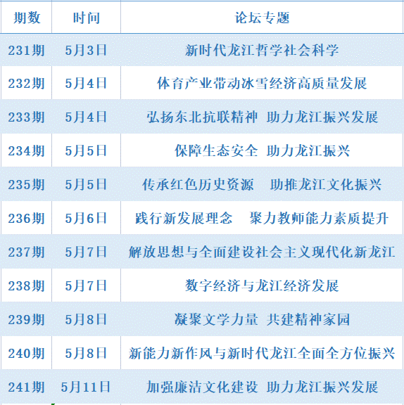 本系列论坛以“解放思想 振兴发展”为主线,聚焦党代会提出的重大理论与现实问题,发挥学会、学科、学术、学者优势,组织社会科学工作者研讨交流、建言献策,团结带领全省社会科学界以思想大解放推动龙江高质量发展。