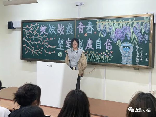 为激励和引领全校广大青年学生进一步坚定制度,在人民最需要的地方贡献力量、绽放青春。财经信息工程学院2022级全体学生于9月25日晚自习在主教学楼开展以“绽放战疫青春,坚定制度自信”为主题的团日活动。