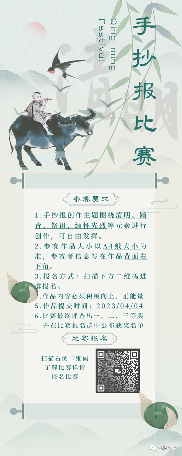 清明节是中国传统文化节日,也是最重要的祭祀节日。为更好让学生缅怀先烈,学习先人、先贤的崇高精神,财经信息工程学院于2023年4月1日至4月4日开展了清明祭文书画征集活动。