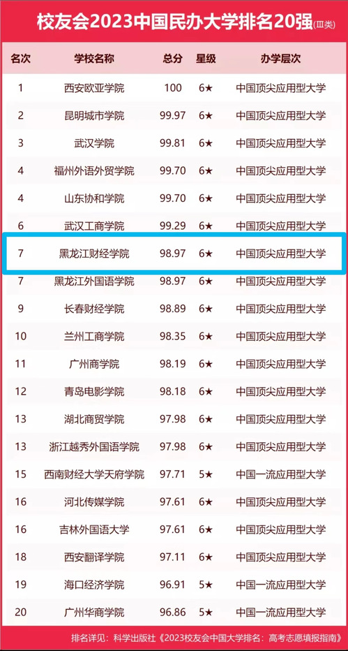 近日,全国第三方大学评价机构艾瑞深校友会网正式发布《校友会2023中国大学排名:高考志愿填报指南》,黑龙江财经学院2023中国民办大学排名Ⅲ类第七, 6星!跻身中国顶尖应用型大学!