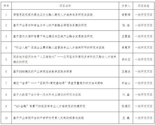 近日,黑龙江省教育厅公布了2022年度高等教育教学改革研究项目立项与结题的结果,我校获批立项10项,其中1项重点委托项目、9项一般研究项目;获批一般研究项目结题10项。