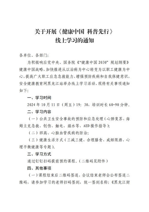 【通知公告】关于开展《健康中国 科普先行》线上学习的通知