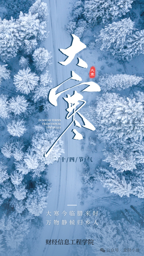 大寒,是二十四节气中的最后一个节气。大寒同小寒一样,都表示天气寒冷程度的节气,大寒是天气寒冷到极致的意思。大寒节气处在三九、四九时段,此时寒潮南下频繁,是一年中最寒冷时节。大寒在岁终,冬去春来,大寒一过,又是一个开始新的轮回。