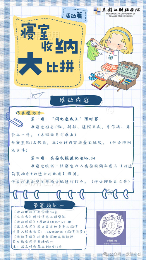 为响应财经信息工程学院关于加强文明寝室建设、促进学生全面发展的号召,结合学院寝室生活实际需求,针对部分寝室存在物品摆放杂乱、空间利用不合理等问题,通过趣味化、竞技化的活动形式,激发学生自主改善寝室环境的积极性,打造“整洁、安全、有文化”的居住空间,助力学生全面发展,同时以评促建,推动形成整洁有序、温馨和谐的寝室文化氛围,特举办本次寝室创意活动。
