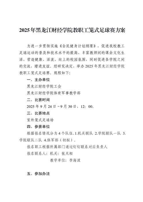 【通知公告】关于2025年黑龙江财经学院教职工笼式足球赛方案的通知