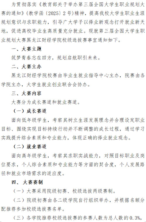【通知公告】关于组织开展第三届全国大学生职业规划大赛 黑龙江财经学院校级选拔赛的通知