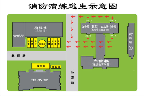 (三)在12:10分封闭松柏居,学生只准从白杨居/白兰居出去,其他学生不准进入。预计演习结束时间为12:40分,解除松柏居封闭,正常开放。